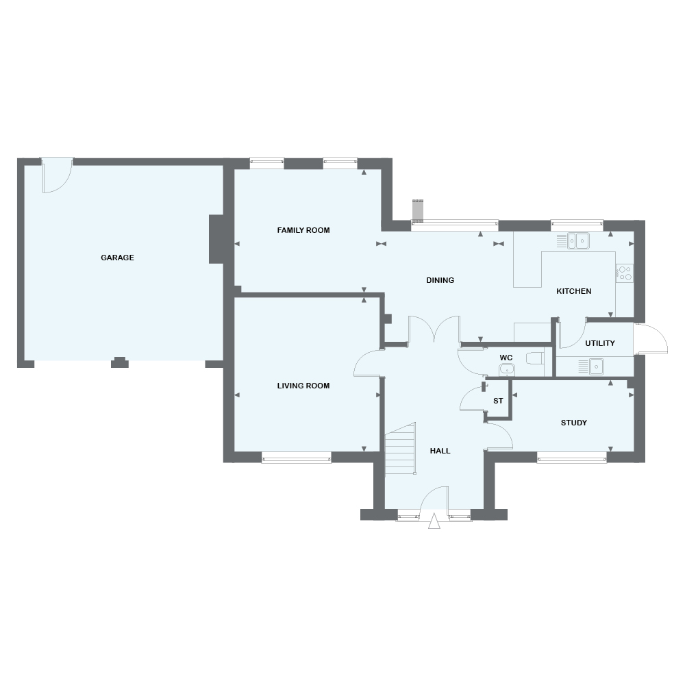 Designed to perfection with modern family living at the heart - you will find a spacious open plan U-shaped kitchen - with breakfast bar and adjoining utility room - dining and family room to the rear of the home; complete with bi-fold doors opening to the garden.
