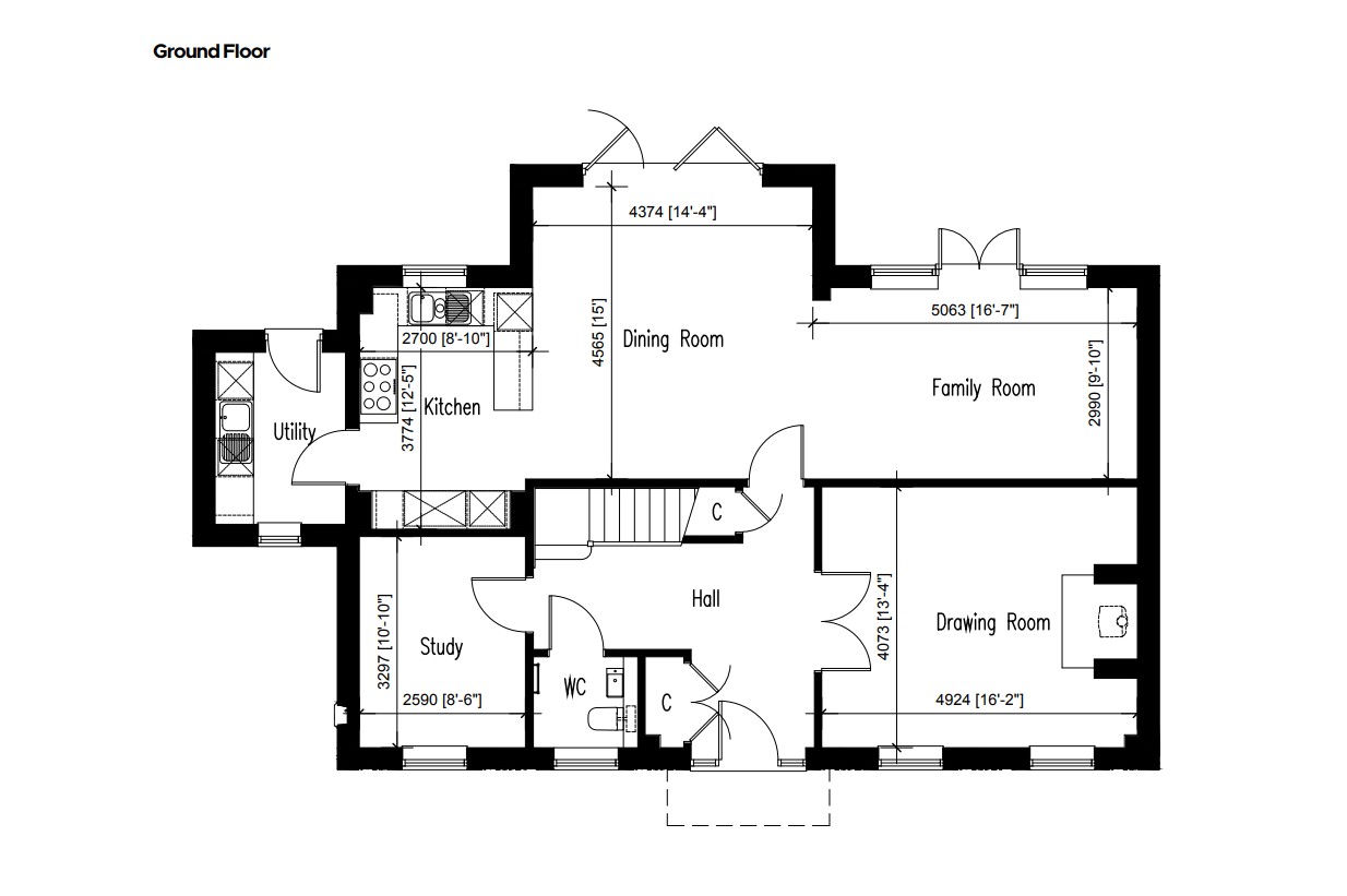 - Double socket with USB inserts to be included in kitchen area, to the bed position in bedroom 1 and one in the study, drawing room, dining room and remaining bedrooms